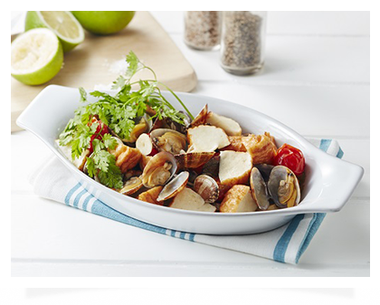 あさりと白ワインのうまみを、魚河岸あげ®にたっぷり含ませました。