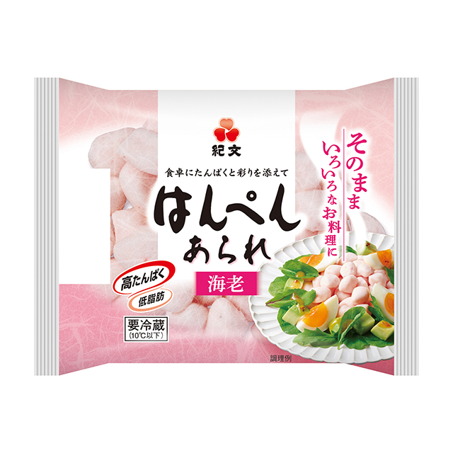 魚肉(さめ(日本)、たら、いとより)、卵白、ボイルえび、砂糖、食塩、魚介エキス調整品、えびエキス加工品、でん粉、発酵調味液、やまいも/加工でん粉、調味料(有機酸等)、増粘多糖類、着色料(クチナシ、パプリカ色素、ベニコウジ色素)、香料、(一部に卵・小麦・えび・かに・大豆・やまいも・ゼラチンを含む)