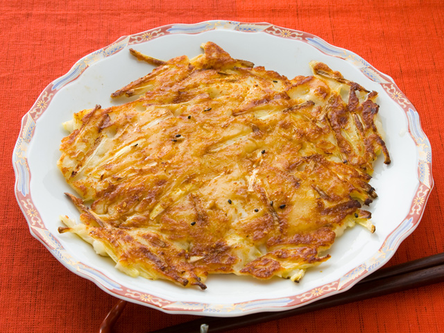 - 32ににらを入れよく混ぜ、フライパンで両面を焼き上げる。